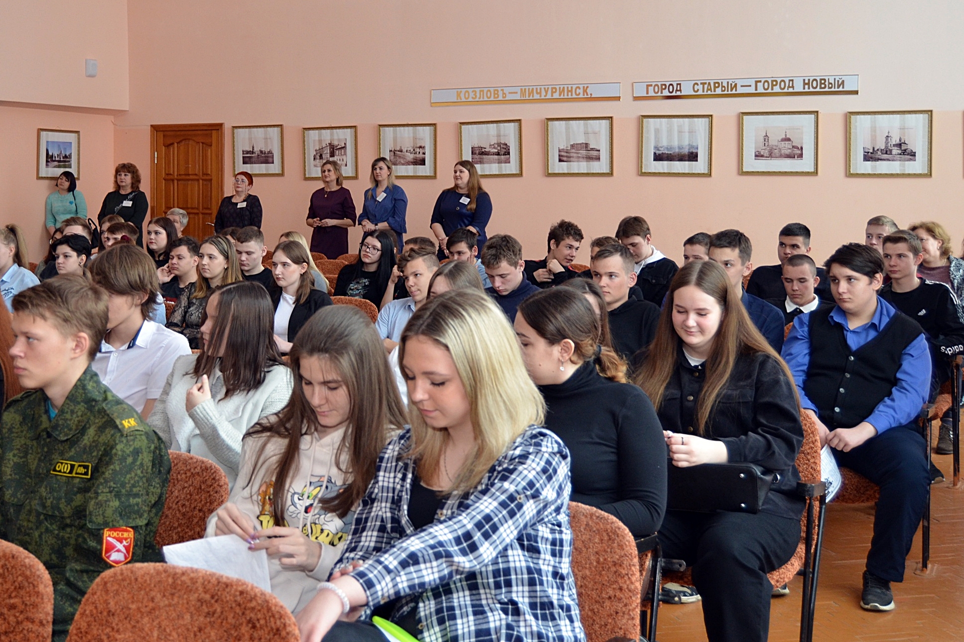 С вступительным словом к абитуриентам обратились директор колледжа Бабайцева Е.А., Дмитриев А.В. заместитель технического директора АО «Мичуринский завод «Прогресс» и Сухарев А.Н. генеральный директор ООО «Нефтемаш-сервис».