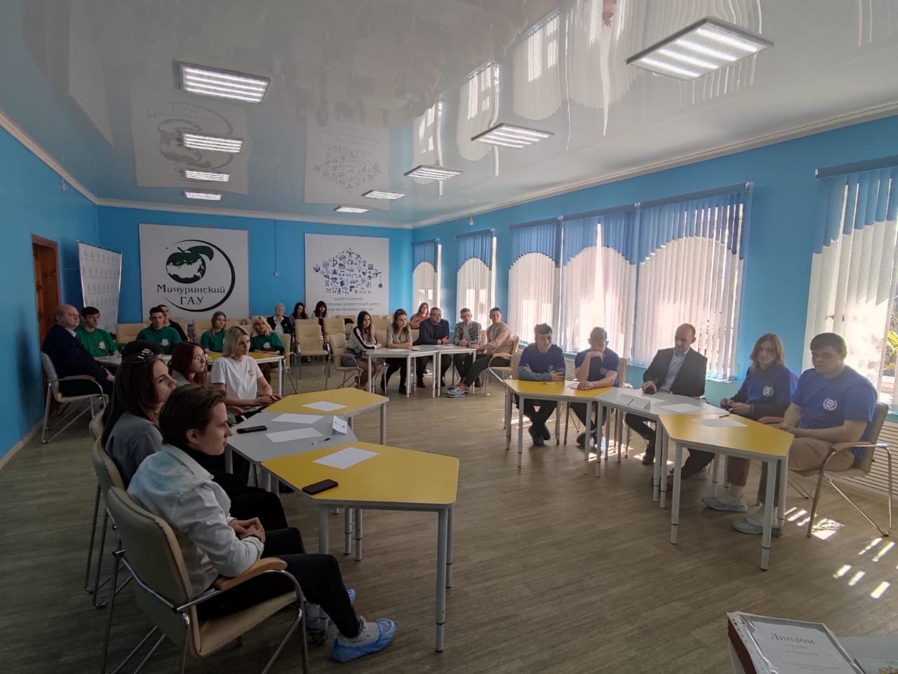 28 апреля на базе Центра развития современных компетенций детей Мичуринского ГАУ прошла интеллектуальная игра «Дебаты», приуроченная ко Дню Молодого избирателя в Тамбовской области. Участниками игры стали студенты средних специальных и высших образовательных организаций города, в каждой команде роль наставников выполняли депутаты Мичуринского городского Совета депутатов Александр Сергеевич Хизов, Михаил Сергеевич Ершов, Алексей Николаевич Сухарев и Олег Игоревич Зазулин.