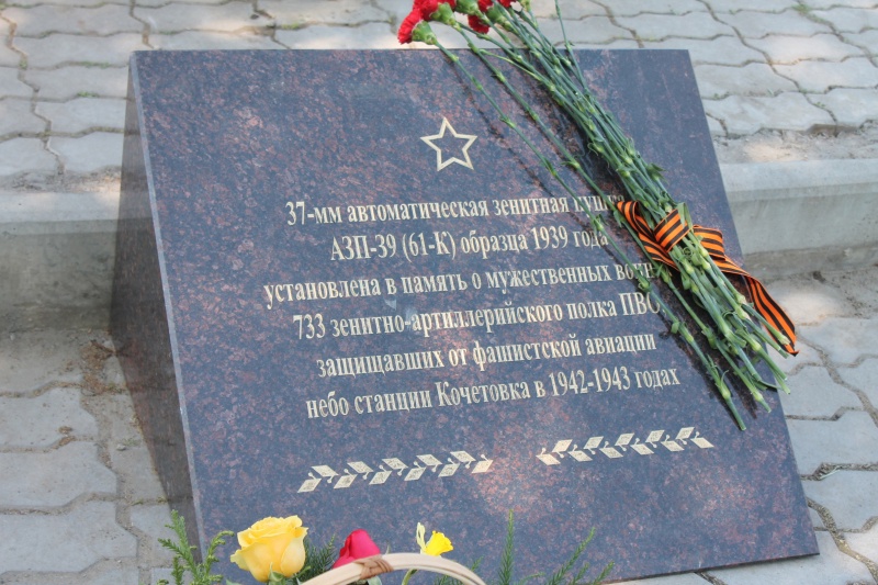 В годы Великой Отечественной войны на станции Кочетовка сосредотачивалась масса военных эшелонов, которые обстреливались с воздуха немецкими бомбардировщиками. Противостояли вражеским налетам молодые девушки, вооруженные зенитными пушками АЗП-39 (61-К). Именно это орудие стало надгробным памятником героическим защитницам Марии Родионовой и Татьяны Новоточиной. Им было 20 и 28 лет. Девушки погибли в ночь с 8 на 9 июня 1943 года во время очередной бомбежки, защищая воздушные рубежи железнодорожной станции от налетов вражеской авиации.