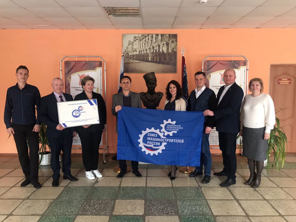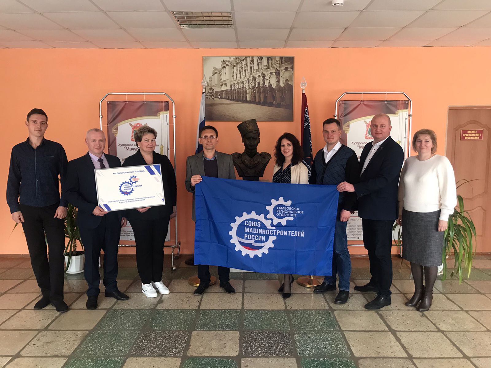 Руководитель службы по связям с общественностью Тамбовского регионального отделения Союза машиностроителей России Геннадий Валерьевич Минаев вручил директору колледжа Елене Алексеевне Бабайцевой табличку, подтверждающую статус участника проекта «Ассоциированные школы Союза машиностроителей».