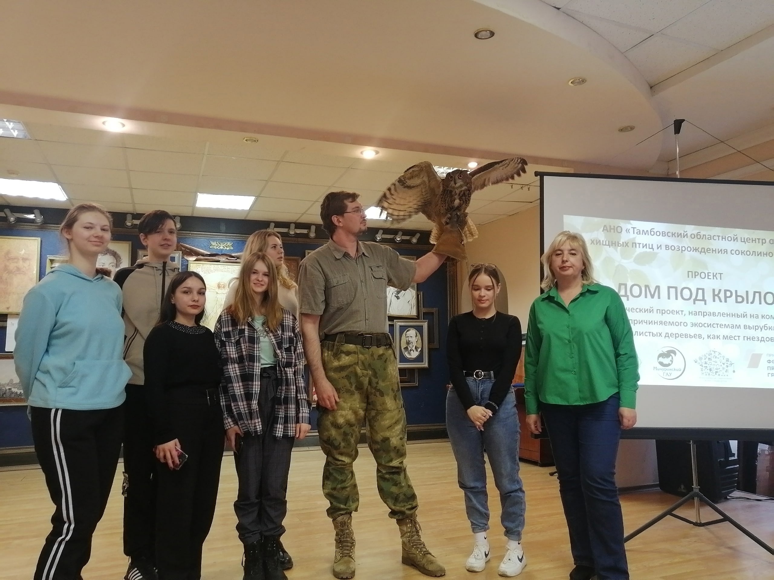 На мероприятии выступали студенты и преподаватели института, они поделились интересной информацией о птицах. Пернатыми гостями праздника стали обитатели Соколиного двора при биостанции педагогического института.