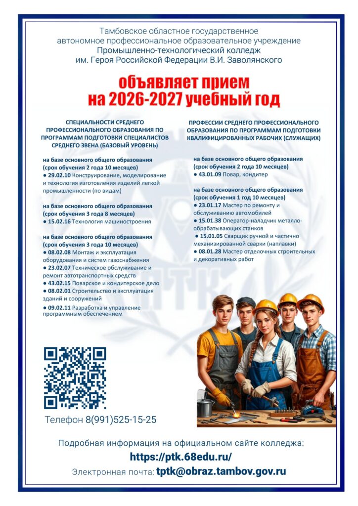 Правила приема обучающихся в ТОГАПОУ «Промышленно-технологический колледж им. В.И. Заволянского» на 2026 — 2027 учебный год